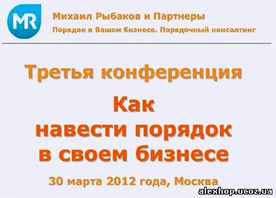 Описание: Третья конференция "Как навести порядок в своем бизнесе" для собственников и руководителей компаний малого и среднего бизнеса, организованная Михаилом Рыбаковым. Состоялась 30 марта 2012 г. Включает 6 докладов: