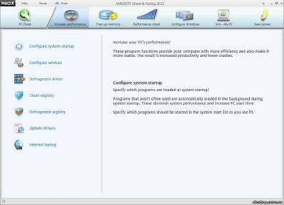 Зачастую, для заметного повышения производительности ПК достаточно выполнить несколько несложных и очевидных действий, например, осуществить очистку системного реестра и избавиться от ненужных программ, отображаемых в списке автозагрузки. Однако, далеко не все пользователи находят время для регулярного обслуживания своей «рабочей лошадки». Набор полезных утилит под названием Magix PC Check and Tuning 2012 упростит эту задачу и позволит парой нажатий на кнопки устранить наиболее распространенные причины снижения производительности персонального компьютера.
