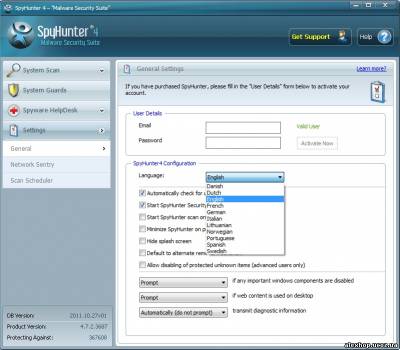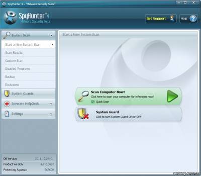[left] Версия: 4.8.13 Build 3861 Разработчик: Enigma Software Group USA, LLC. Язык интерфейса: Мульти без Русского Таблэтка: Присутствует Системные требования: Microsoft Windows XP (32-bit) Home/Professional/Tablet PC/Media Center (32-bit) with Service Pack 2 or later Microsoft Windows Vista (32-bit and 64-bit) Starter/Home Basic/Home Premium/Business/Ultimate Microsoft Windows 7 (32-bit and 64-bit) Starter/Home Basic/Home Premium/Professional/Ultimate SpyHunter - программа, которая очищает систему от программ-шпионов, кейлоггеров, резидентных вирусов, при необходимости удаляет cookies, записи в реестре, оставленные шпионскими программами. Проверяет запущенные процессы, ключи реестра, элементы ActiveX. Имеет весьма дружественный интерфейс, благодаря которому, предельно проста в работе, а внушительная база сигнатур не позволит ни одному шпиону остаться незамеченным. SpyHunter использует специально разработанные методы, позволяющие удалять spyware программы, которые не могут быть удалены другими анти-spyware программами. Функция Rollback Capabilities позволяет посмотреть историю удаленных spyware и вернуть назад ошибочно перемещенные в карантин. В дополнение к сканированию и удалению шпионского и рекламного ПО, SpyHunter также имеет возможность быстрого генерирования логов и интерфейс с прямой поддержкой связи с отделом борьбы с новыми шпионскими угрозами. Предотвращает кражу номеров кредитных карт. Характеристики: Удаляет Шпионы, Рекламу, Кейлогеры, Cookies и Панели инструментов. Удаляет шпионские регистрационные ключи, программы всплывающих окон и другие вредоносные программы. Удаляет вредоносные программы, замедляющие работу компьютера. Расширенная база данных с сигнатурами угроз шпионов и рекламных ПО. Бесплатные обновления на новые шпионские угрозы. Быстрейший сканер из представленных на рынке. Возможность отмены удаления шпиона. Простой в использовании интерфейс. Не конфликтует с основными продуктами безопасности [/left]